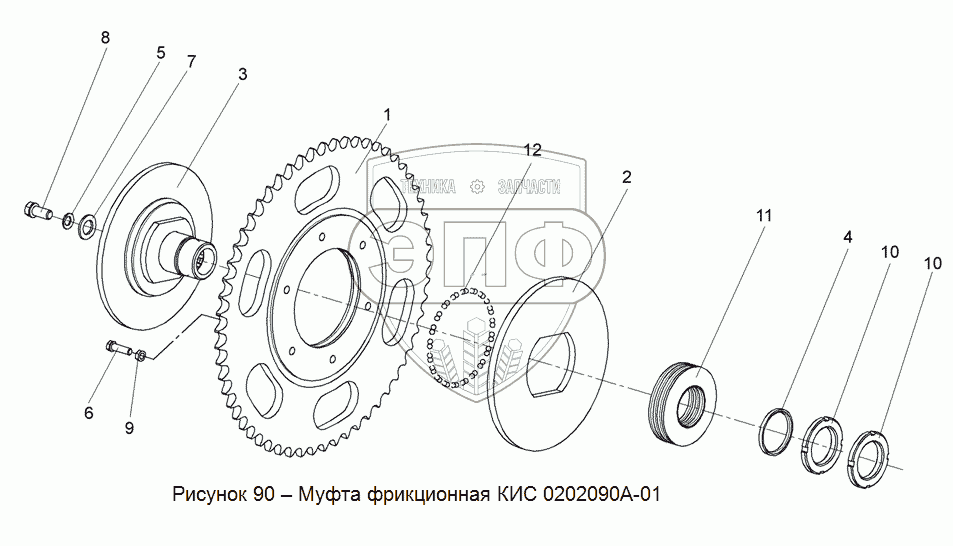 Каталог запасных частей к технике: Гомсельмаш КСК-100А-3. КИС 0202090А-01 Муфта фрикционная