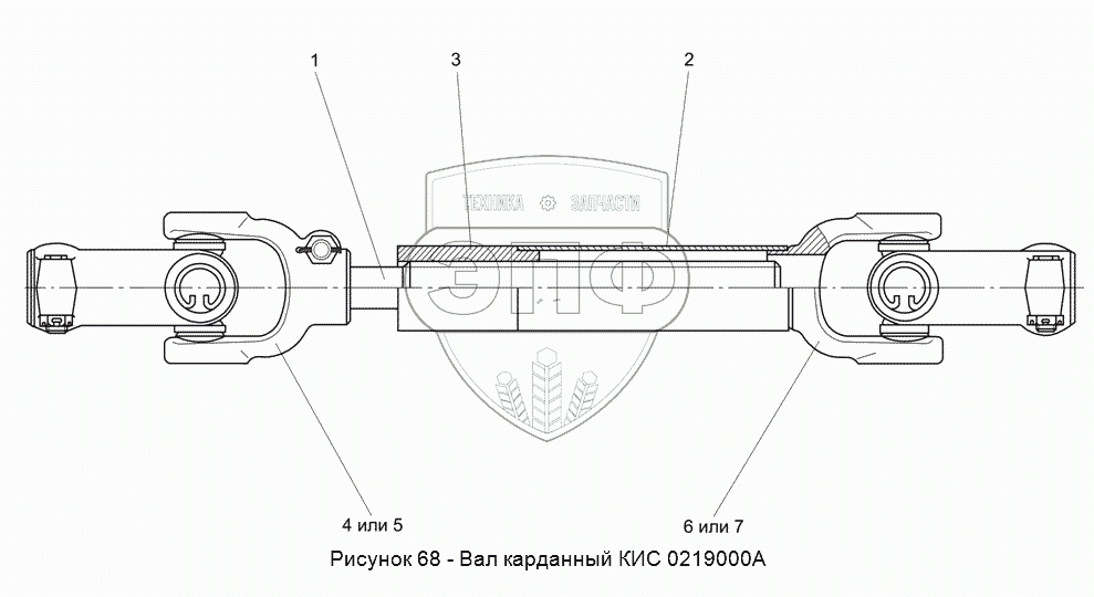 Каталог запасных частей к технике: Гомсельмаш КСК-100А-3. КИС 0219000А Вал карданный