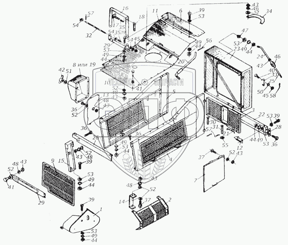 Каталог запасных частей к технике: Гомсельмаш КСК-100А. Капоты воздухоочистителя и ограждения КИЛ 0128000