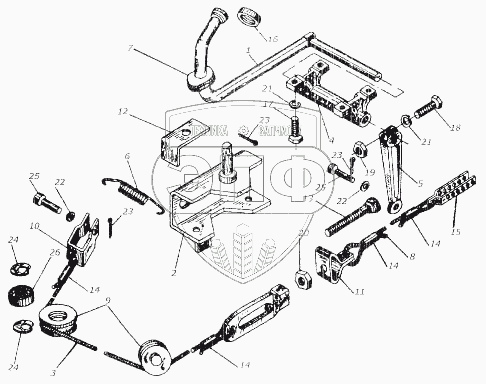 Каталог запасных частей к технике: Гомсельмаш КСК-100А. Механизм блокировки КПП КИЛ 0119100