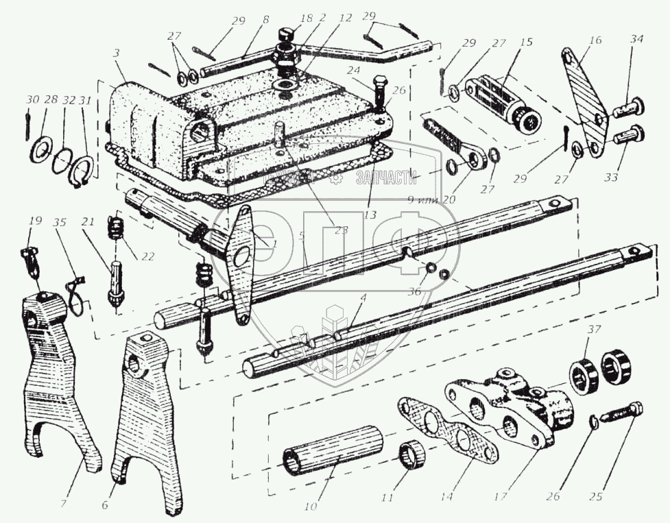 Каталог запасных частей к технике: Гомсельмаш КСК-100А. Механизм переключения передач