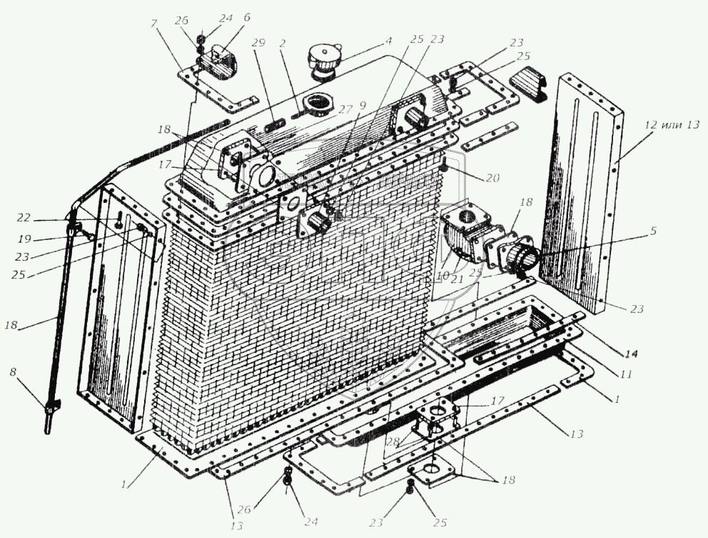 Каталог запасных частей к технике: Гомсельмаш КСК-100А. Радиатор водяной КИЛ 0106160