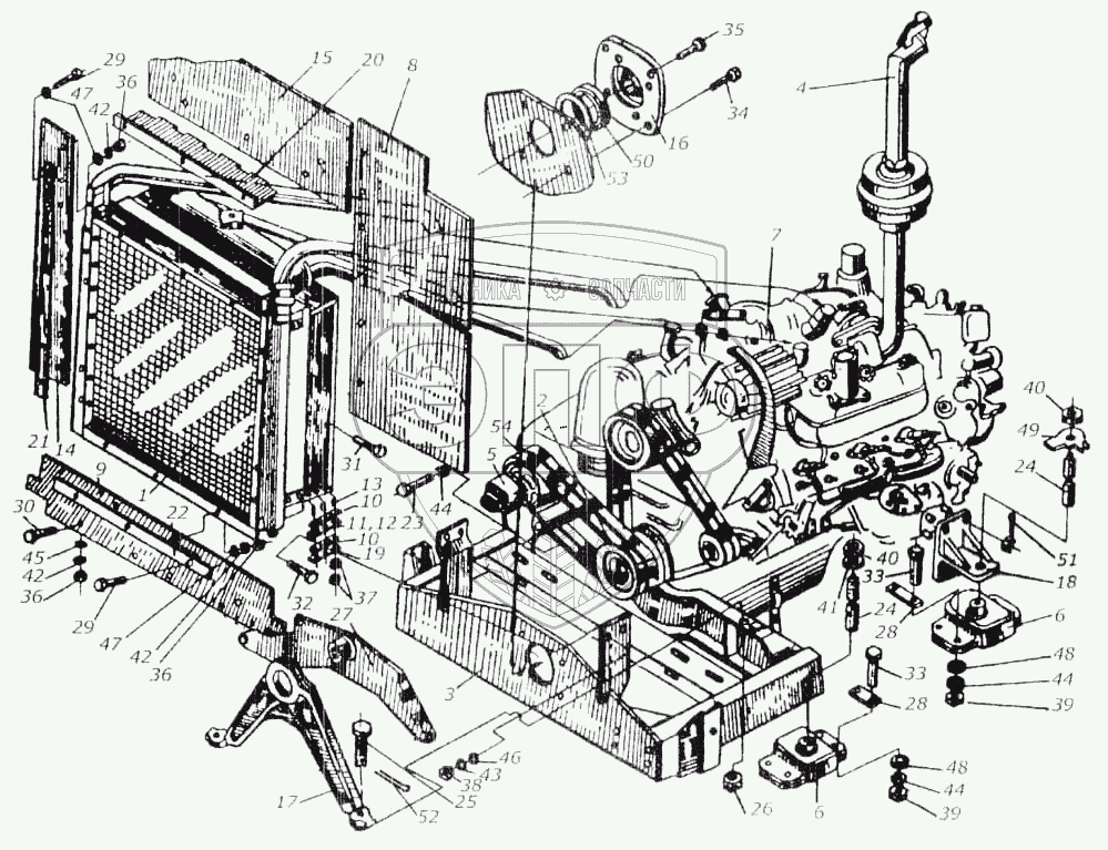 Каталог запасных частей к технике: Гомсельмаш КСК-100А. Установка дизеля на рамке