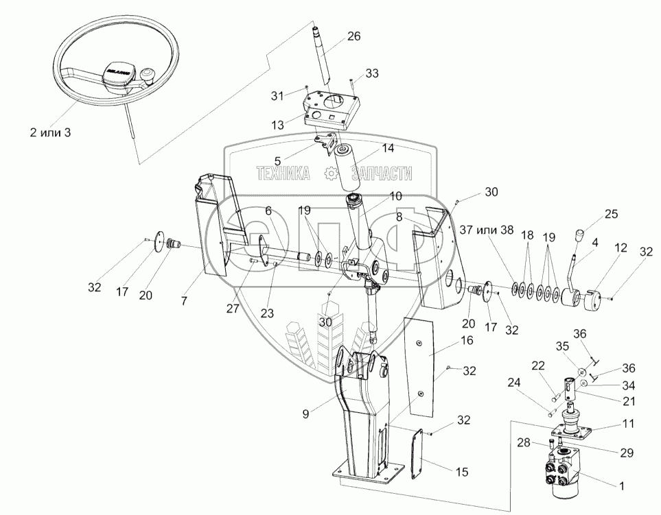 Каталог запасных частей к технике: Гомсельмаш КСК-600. Рулевая колонка КГС 0119570