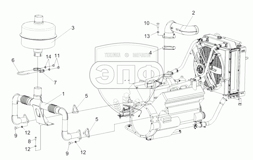 Каталог запасных частей к технике: Гомсельмаш КСК-600. Установка глушителя КИЛ 0116630