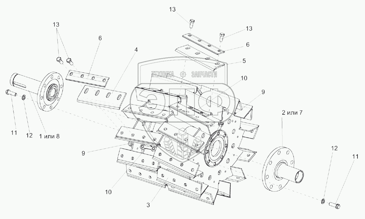 Каталог запасных частей к технике: Гомсельмаш КСК-600А. Барабан КГС 0150330-01