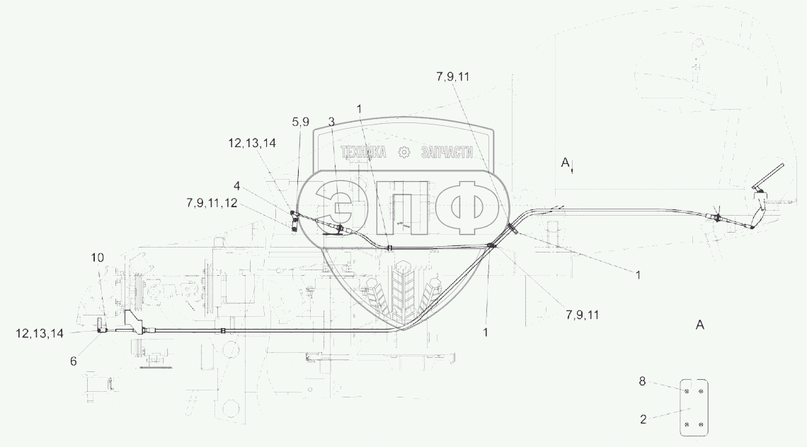 Каталог запасных частей к технике: Гомсельмаш КСК-600А. Установка тросов КГС 0119290