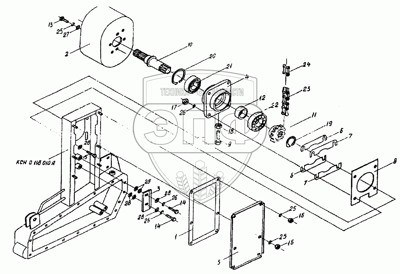 Каталог запасных частей к технике: Гомсельмаш КСН-6. Контрпривод валкоукладчика