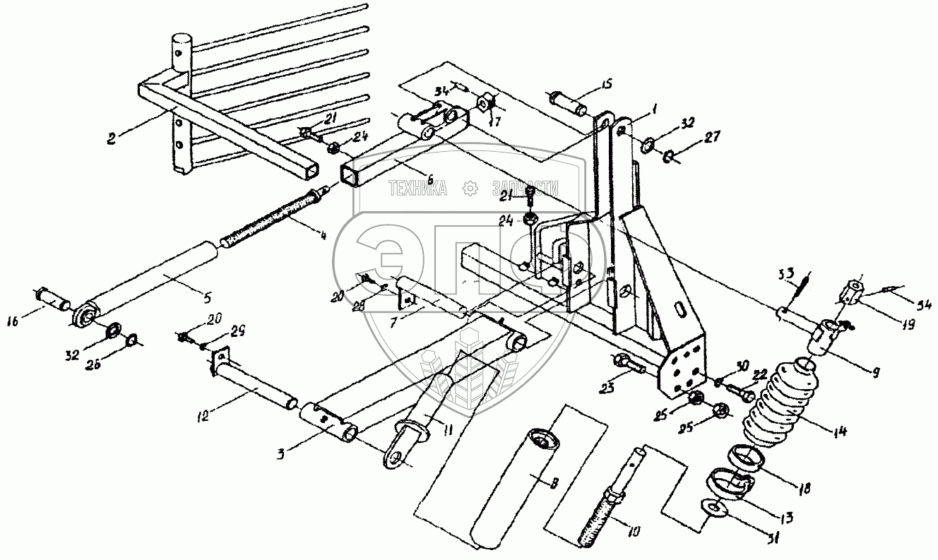 Каталог запасных частей к технике: Гомсельмаш КСН-6. Рамка, тяги валкоукладчика (правые)