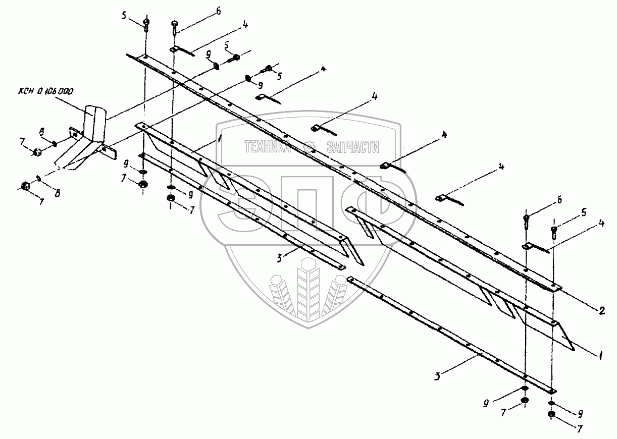 Каталог запасных частей к технике: Гомсельмаш КСН-6. Установка брызговика (КСН0100350)