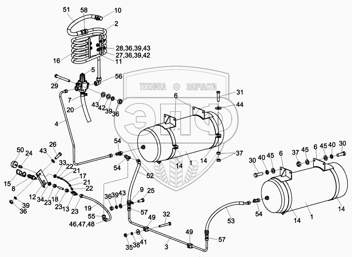 Каталог запасных частей к технике: Гомсельмаш КВК-6025. Пневмосистема КСК-6025-0180000