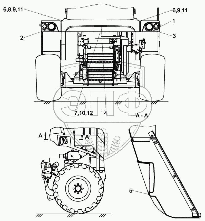 Каталог запасных частей к технике: Гомсельмаш КВК-6025. Установка бампера КСК-6025-0100100