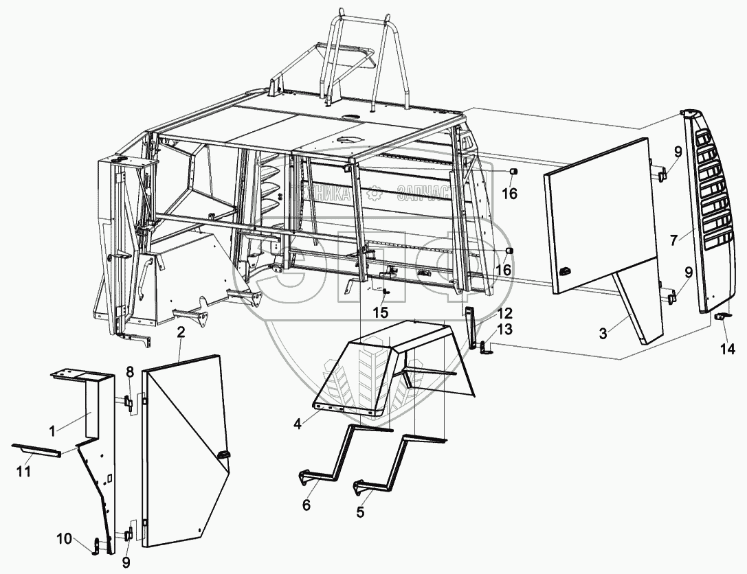 Каталог запасных частей к технике: Гомсельмаш КВК-6025. Установка капотов КСК-6025-0128000