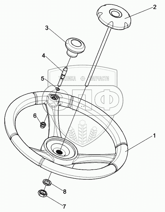Каталог запасных частей к технике: Гомсельмаш КВК-6025. Установка колеса рулевого КЗК-12-0122300