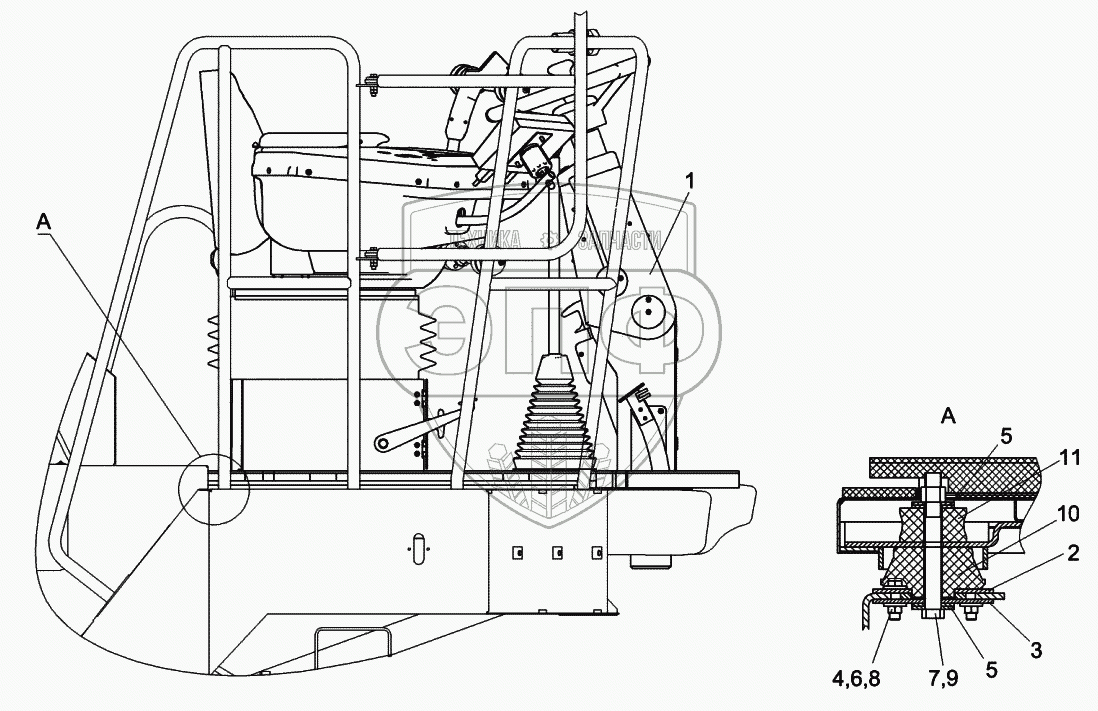 Каталог запасных частей к технике: Гомсельмаш КВК-6025. Установка площадки управления КСК-6025-0119200