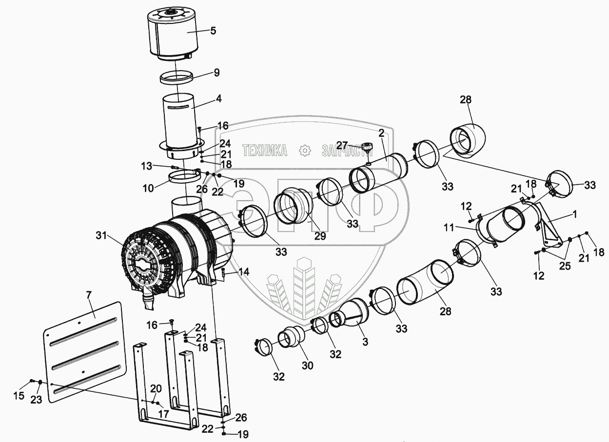Каталог запасных частей к технике: Гомсельмаш КВК-6025. Установка воздухоочистителя КСК-6025-0116080