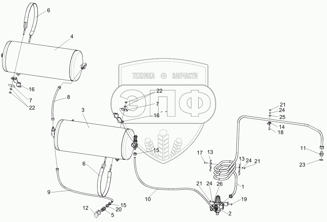 Каталог запасных частей к технике: Гомсельмаш КВК-800 (FS80-2). Пневмосистема КВС-2-0800000