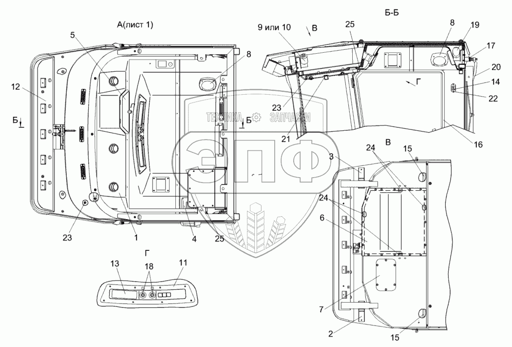 Каталог запасных частей к технике: Гомсельмаш КВК-800 (FS80-5). Кабина КВС-2-0122000
