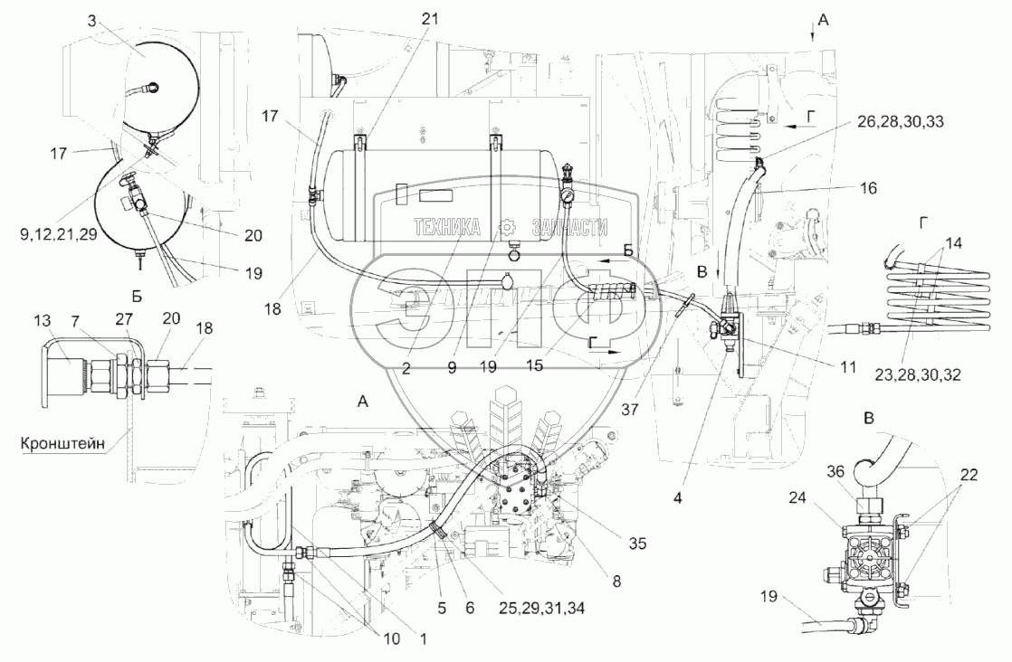 Каталог запасных частей к технике: Гомсельмаш КВК-800 (FS80-7). Пневмосистема КВС-7-0800000