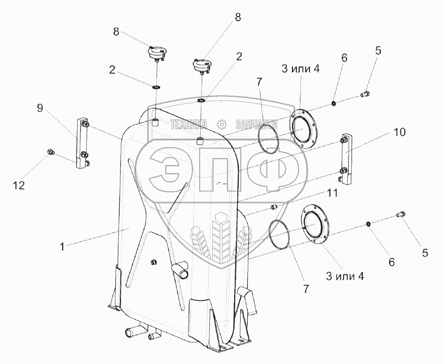 Каталог запасных частей к технике: Гомсельмаш КВК-800 (FS80). Бак масляный КВС-2-0601310В