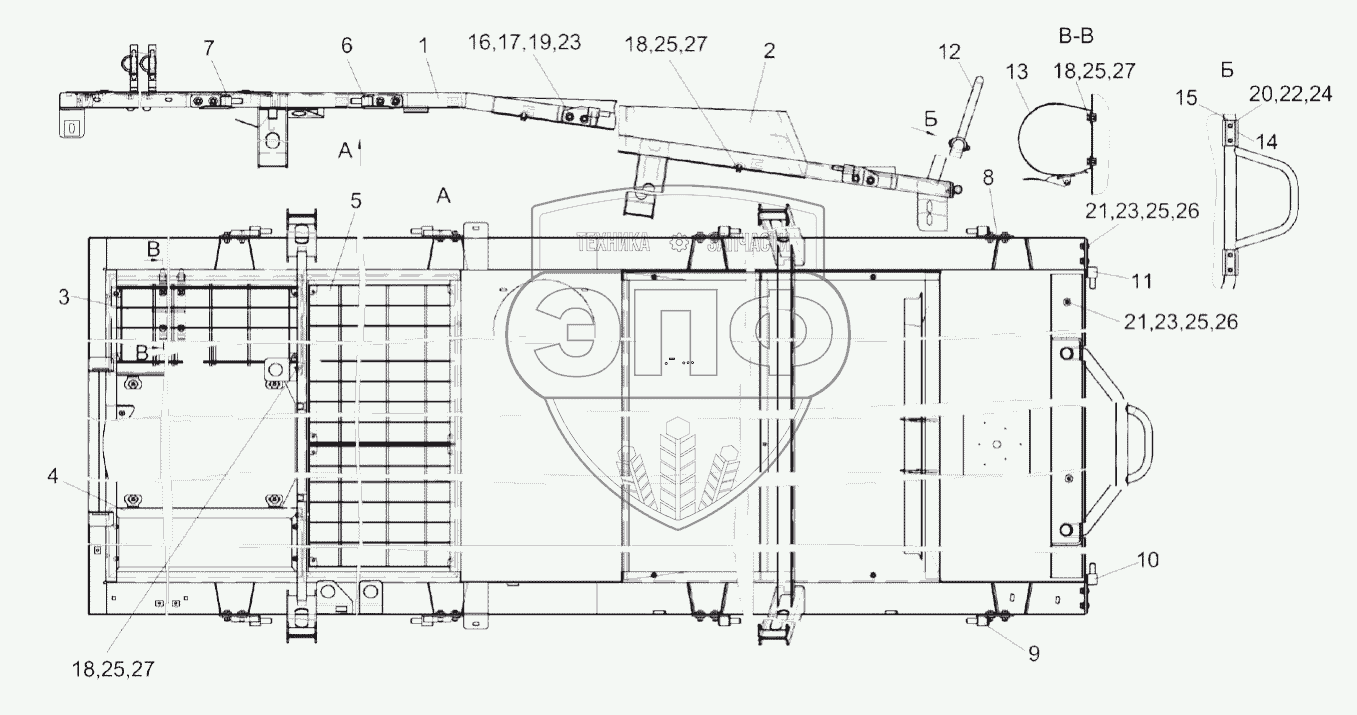 Каталог запасных частей к технике: Гомсельмаш КВК-8060. Крыша КВК 0162000