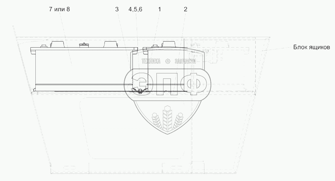 Каталог запасных частей к технике: Гомсельмаш КВК-8060. Установка аккумуляторов КВК 0100020