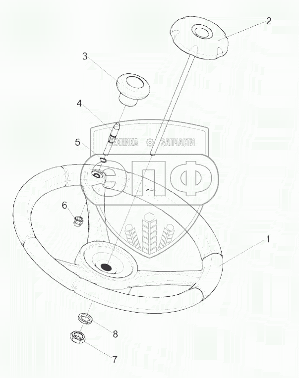 Каталог запасных частей к технике: Гомсельмаш КВК-8060. Установка колеса рулевого КЗК-12-0122300