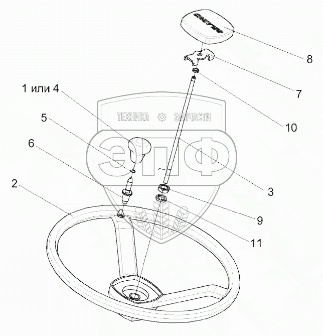 Каталог запасных частей к технике: Гомсельмаш КВК-8060. Установка колеса рулевого УЭС 0302560
