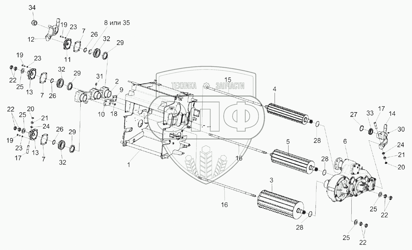 Каталог запасных частей к технике: Гомсельмаш КВК-8060. Установка вальцев верхних
