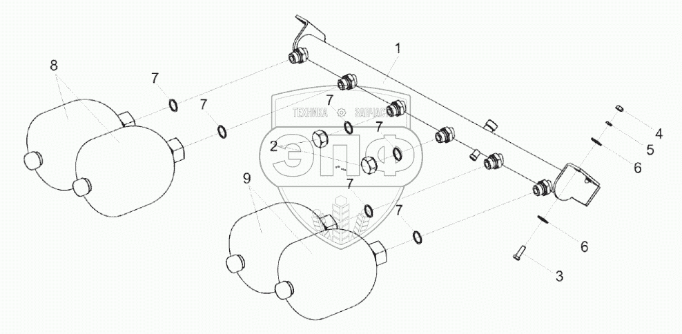 Каталог запасных частей к технике: Гомсельмаш КВК-8060. Блок пневмогидроаккумуляторов КВК 0602350Б