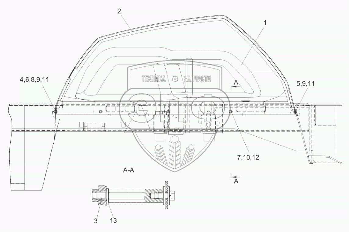 Каталог запасных частей к технике: Гомсельмаш КВК-8060. Установка крыльев КВК 0161010
