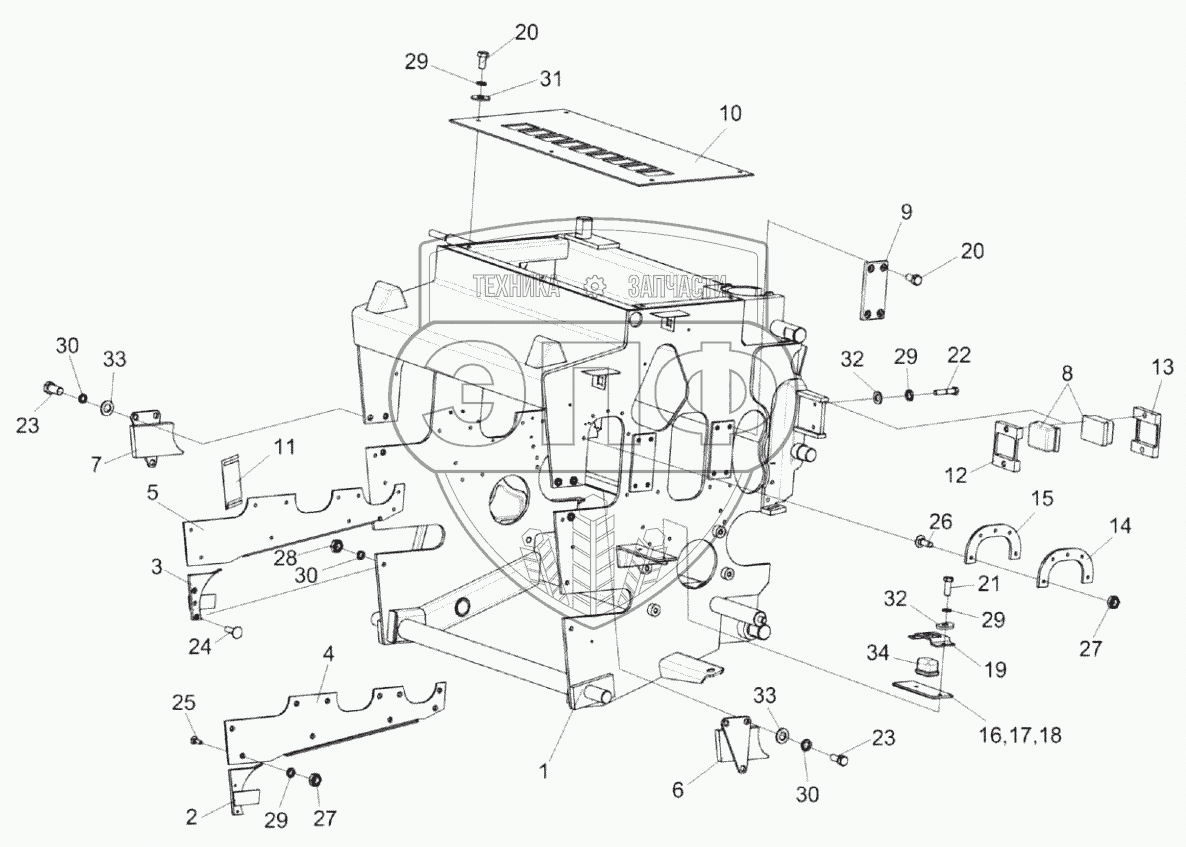 Каталог запасных частей к технике: Гомсельмаш КВК-8060. Установка рамы аппарата питающего