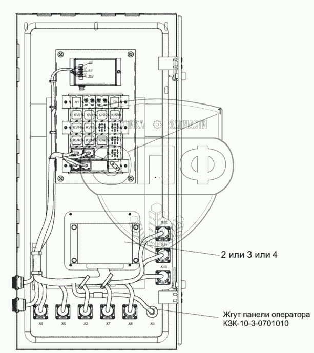 Каталог запасных частей к технике: Гомсельмаш КЗС-10К Палессе GS10. Электрооборудование шкафа электрического