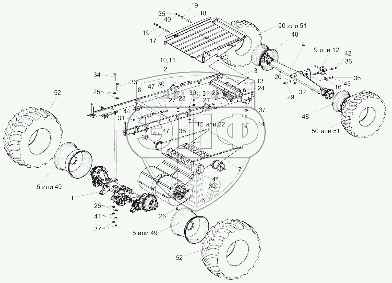 Каталог запасных частей к технике: Гомсельмаш КЗС-1218А-1. Шасси КЗК-12-0111000В