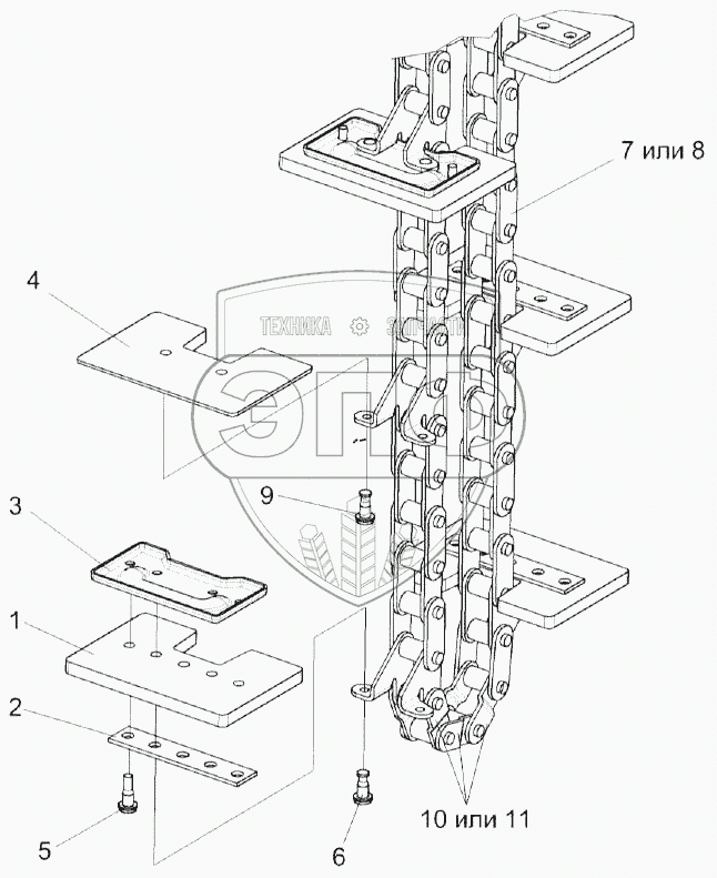 Каталог запасных частей к технике: Гомсельмаш КЗС-1218А-1. Цепь элеватора КЗР 0208080В
