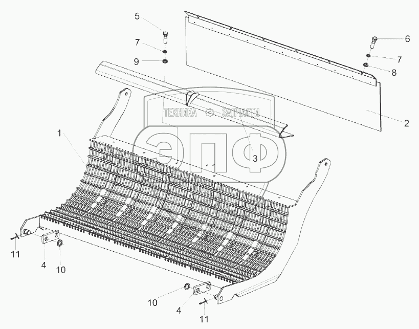 Каталог запасных частей к технике: Гомсельмаш КЗС-1624-1. Подбарабанье заднее КЗК-1420-0103200