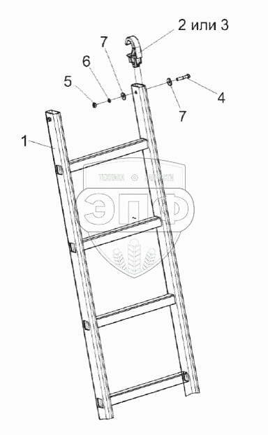 Каталог запасных частей к технике: Гомсельмаш КЗС-1624-1. Лестница КЗК-1420-0131830