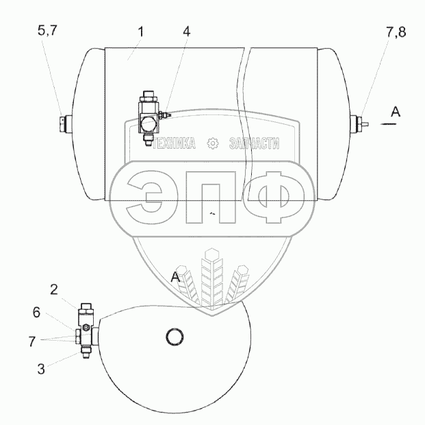 Каталог запасных частей к технике: Гомсельмаш КЗС-1624-1. Ресивер КЗК-16-1-0800050