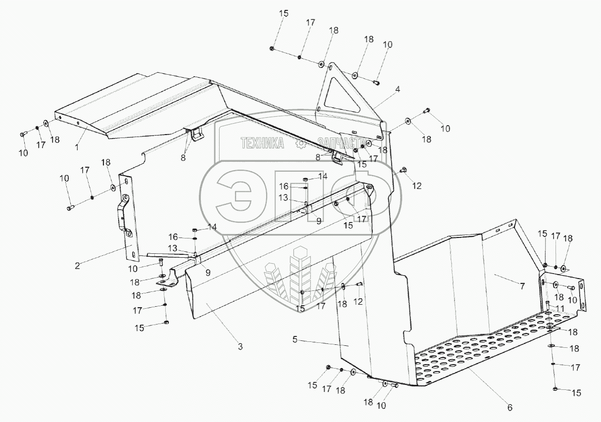 Каталог запасных частей к технике: Гомсельмаш КЗС-1624-1. Установка ограждения КЗК-1420-0100100
