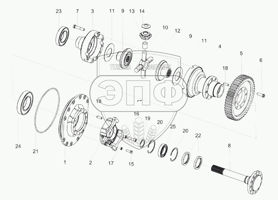 Каталог запасных частей к технике: Гомсельмаш КЗС-2124КР. Блок дифференциала КЗК-1624-0107210