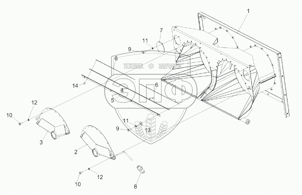Каталог запасных частей к технике: Гомсельмаш КЗС-2124КР. Горловина КЗК-14-0212160А