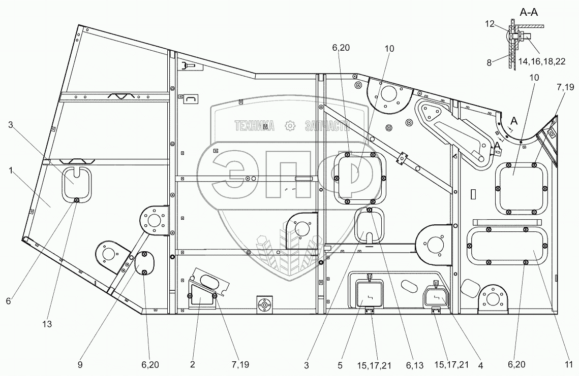 Каталог запасных частей к технике: Гомсельмаш КЗС-7. Боковина правая КЗК 0202060В