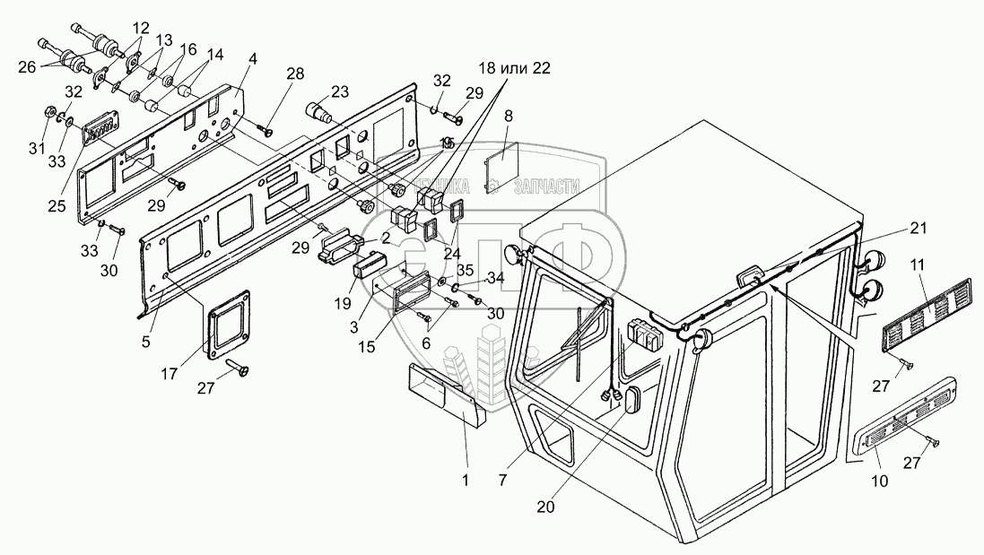 Каталог запасных частей к технике: Гомсельмаш КЗС-7. Кабина (блок выключателей, переключатель стеклоочистителя)