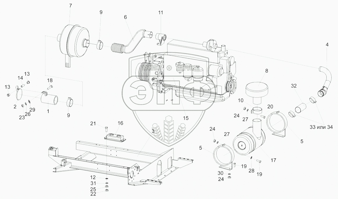 Каталог запасных частей к технике: Гомсельмаш КЗС-812. Установка дизеля (глушитель, воздухозаборник)