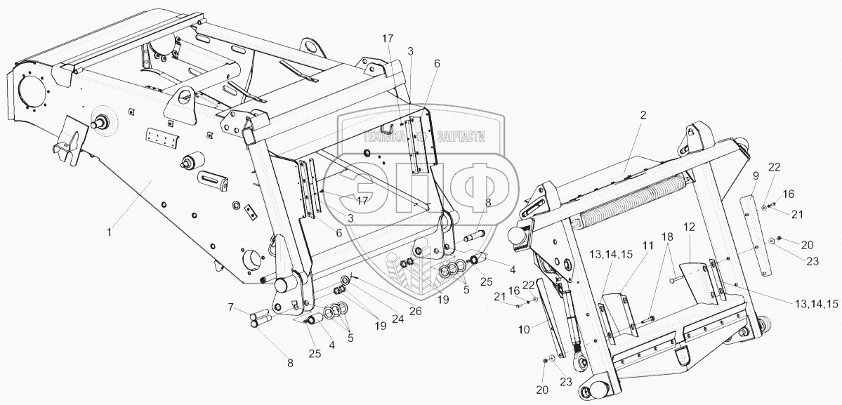 Каталог запасных частей к технике: Гомсельмаш КЗС-812. Установка рамки переходной КЗК 1780000А