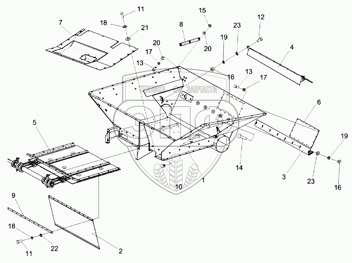 Каталог запасных частей к технике: Гомсельмаш KЗС-812. Бункер КЗК-7-0229000-02
