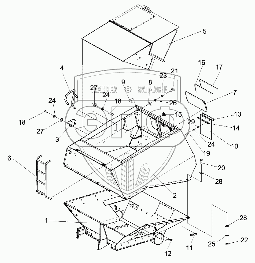 Каталог запасных частей к технике: Гомсельмаш KЗС-812. Бункер КЗК-7-0229000-02