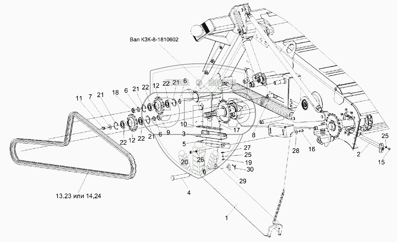 Каталог запасных частей к технике: Гомсельмаш KЗС-812. Камера наклонная. Привод транспортера
