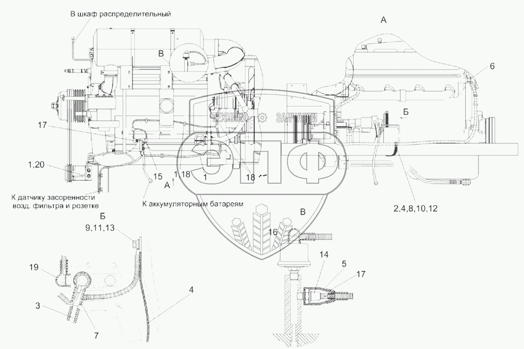 Каталог запасных частей к технике: Гомсельмаш KЗС-812. Электрооборудование установки двигателя