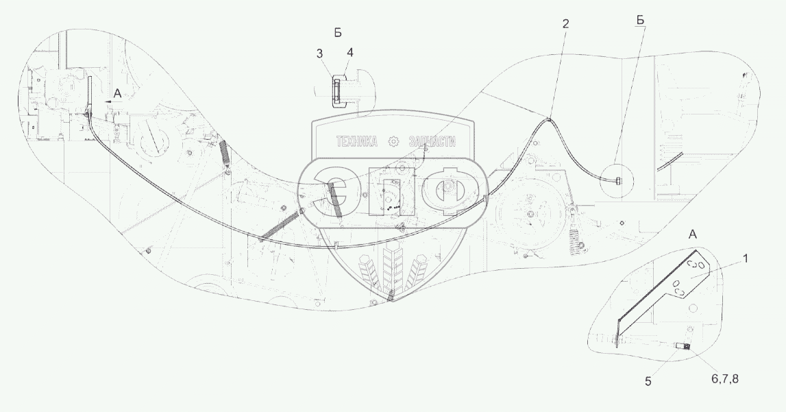 Каталог запасных частей к технике: Гомсельмаш KЗС-812. Установка троса ГСТ КЗК-8-0119150